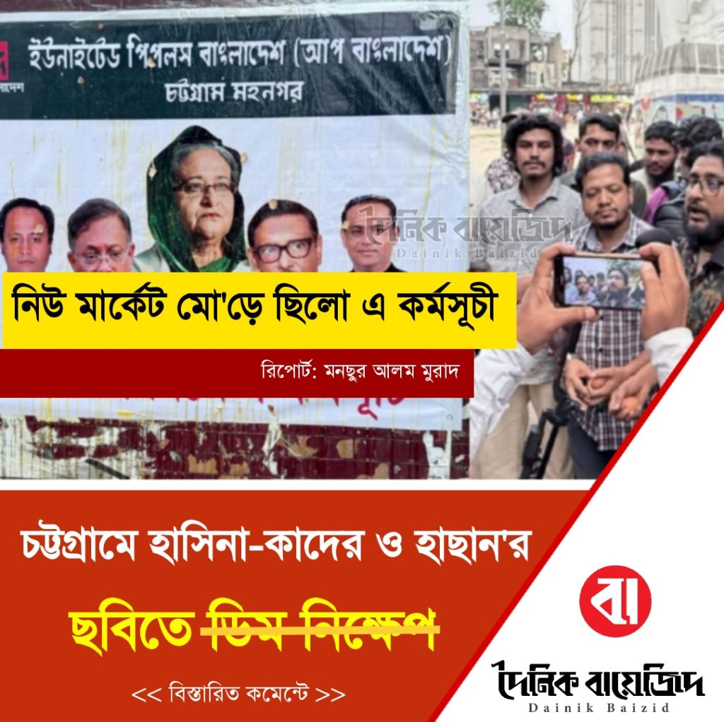 নিউ ইয়র্কে এনসিপি সদস্যসচিব আখতার হোসেনকে আওয়ামী সন্ত্রাসীদের ডিম নিক্ষেপের প্রতিবাদে চট্টগ্রামে পলাতক সাবেক ফ্যাসিস্ট প্রধানমন্ত্রী শেখ হাসিনা, আওয়ামী লীগের পলাতক মন্ত্রী ওবায়দুল কাদের ও হাছান মাহমুদের ছবিতে ডিম নিক্ষেপ কর্মসূচি পালন করা হয়েছে।