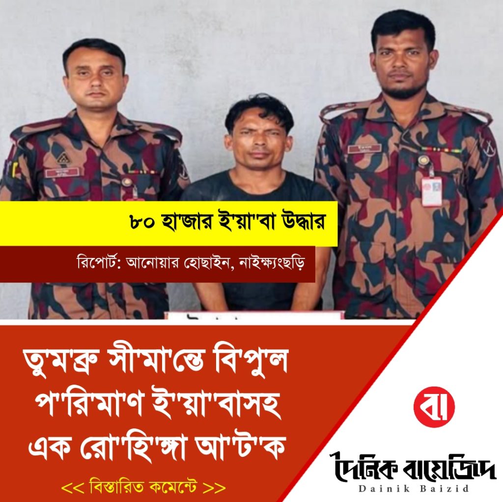 বান্দরবানের নাইক্ষ্যংছড়িতে বর্ডার গার্ড বাংলাদেশ (বিজিবি) এর বিশেষ অভিযানে বিপুল পরিমাণ ইয়াবা উদ্ধার হয়েছে। এসময় ৮০ হাজার পিস ইয়াবা ট্যাবলেটসহ একজন রোহিঙ্গা মাদক কারবারিকে আটক করেছে বিজিবি।